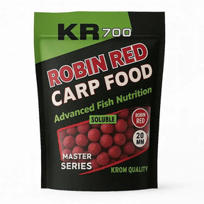 torba boilies marka rozpuszczalna Krom Quality zasięg KR700, smak Robin Red, od 20 milimetrów, zwłaszcza do połowu karpi.