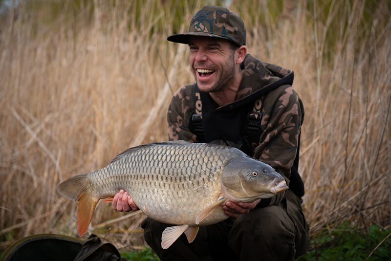 Markowa czapka z płaskim daszkiem Fox model Snapback z wzorem kamuflażspecjalnie do łowienia karpi.