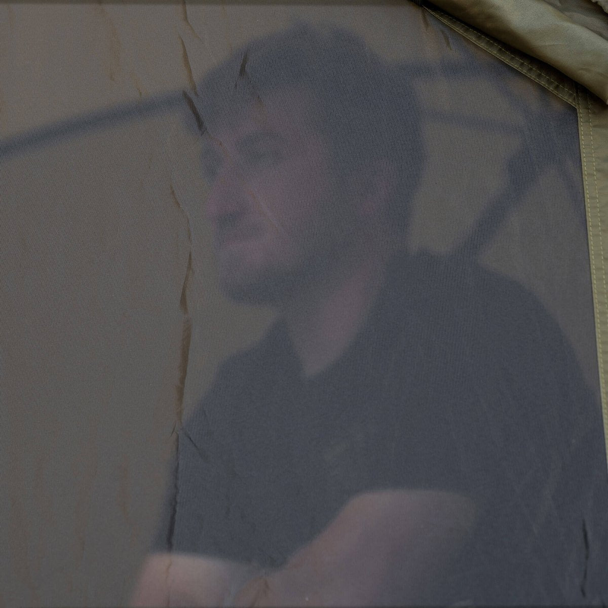 - Regulowany panel przedni, który można zwinąć lub zapiąć na zamek błyskawiczny, aby zapewnić bezpieczne, łatwe otwieranie i zamykanie Bivvy otwarty lub zamknięty