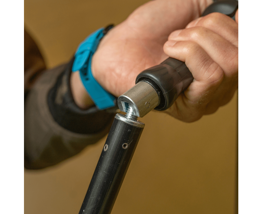 - Odchylany stalowy słupek centralny z kolcem do bezpiecznego mocowania