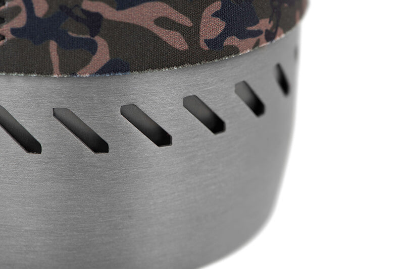 - Zawiera neoprenowy rękaw w kolorze camo, który może pozostać na patelni