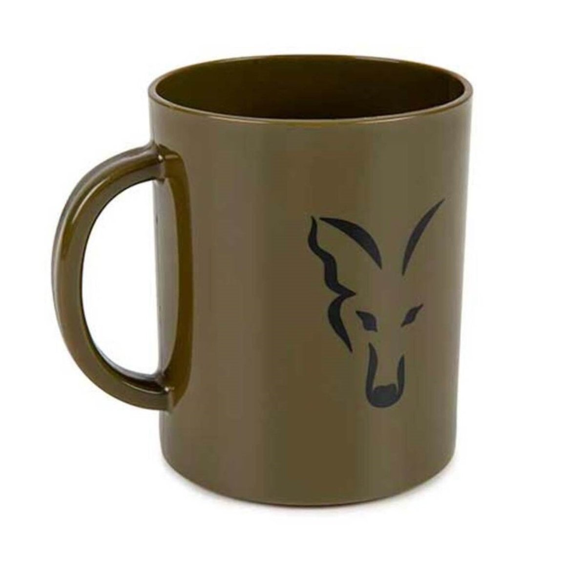 Markowy kubek Fox z kolorowym wzorem zielony i logo w kolorze czarny, specjalne do połowu karpi.