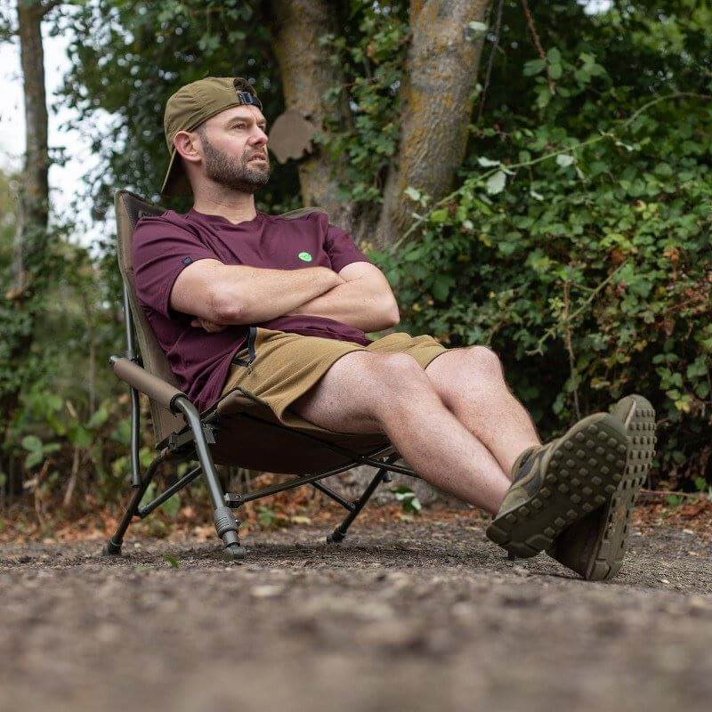 Fotele marki Korda model Compac Niski w kolorze zielony, specjalne do łowienia karpi.