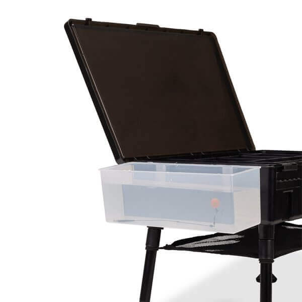 - Wyposażony w zbiornik rig proof umożliwiający dostosowanie prezentacji i przechowywanie suchych toreb lub siatkowych tub PVA