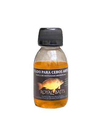Puszka skoncentrowanego płynu marki Royal Baits o smaku brzoskwiniowo-ananasowym, idealna do łowienia karpi.