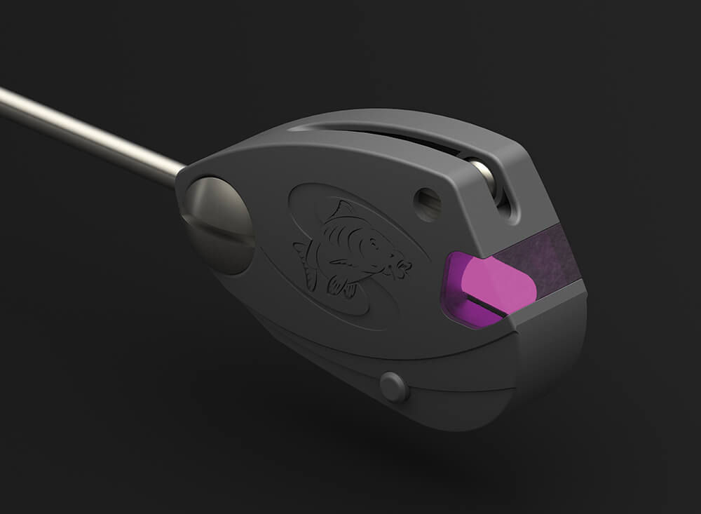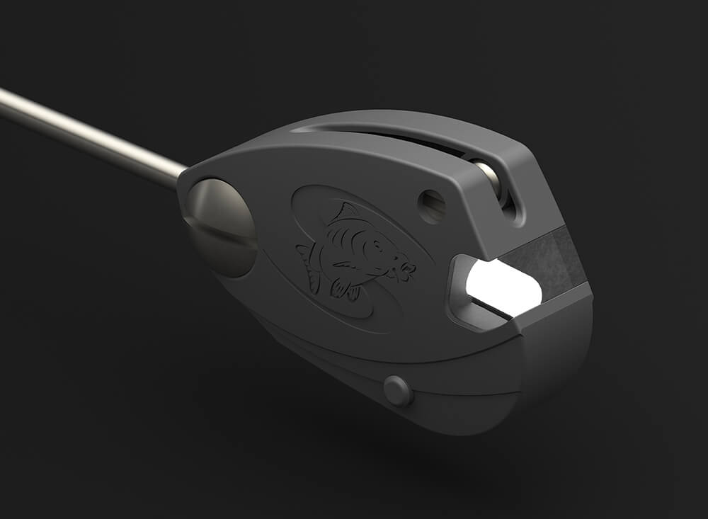 - Regulowany klips z podwójną kulką, który może być używany z linką główną lub plecionką o dowolnej średnicy. Wystarczy obrócić małą śrubę bez łba, aby ustawić żądany nacisk między kulkami klipsa.