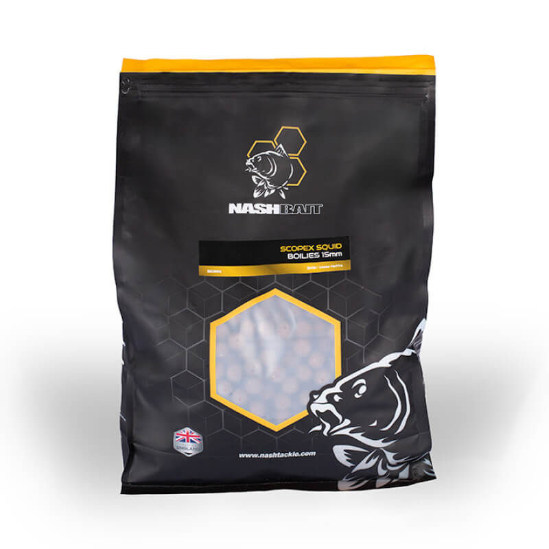 Worek 1 kg boilies marki Nash smak Scopex Squid przy Kolor naturalny z 15 milimetrów, szczególnie do łowienia karpi.