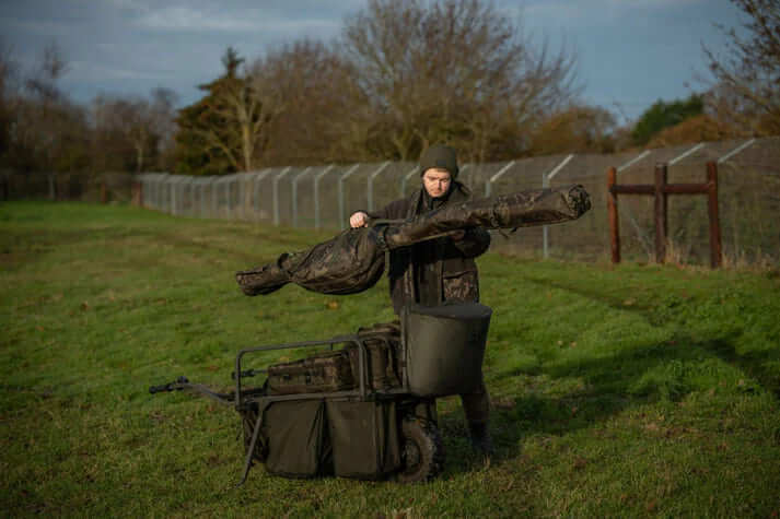 Przypadek dla 3 Wędki z 10 stóp marki Nash model Subterfuge Soft Protect W Kolor Camo, zaprojektowany w celu całkowitego transportu Wędki Karpingu.