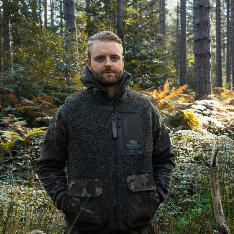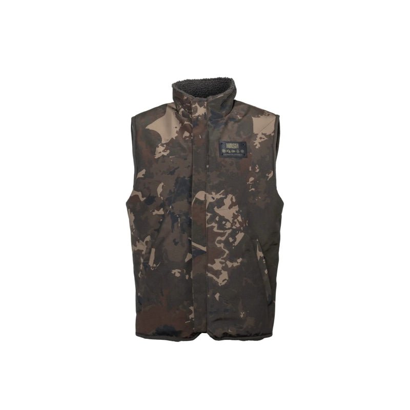 Wodoodporna kamizelka marki bez rękawów Nash model ZT Sherpa z wzorem w Kolor camospecjalne do łowienia karpi.