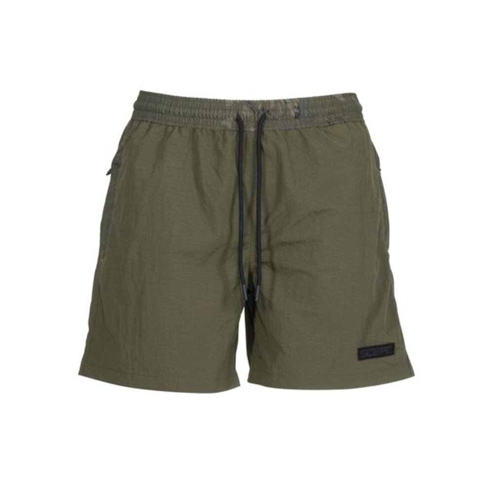 Marka strojów kąpielowych Nash model Scope Ops Short w kolorze khaki/kamuflaższczególnie do łowienia karpi.