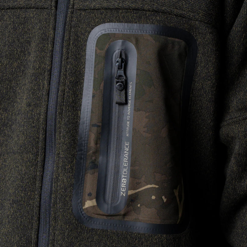 - Wyposażony w zapinaną na zamek kieszeń na piersi Tech Protect, która chroni telefony i odbiorniki alarmowe przez cały czas dzięki wodoodporności