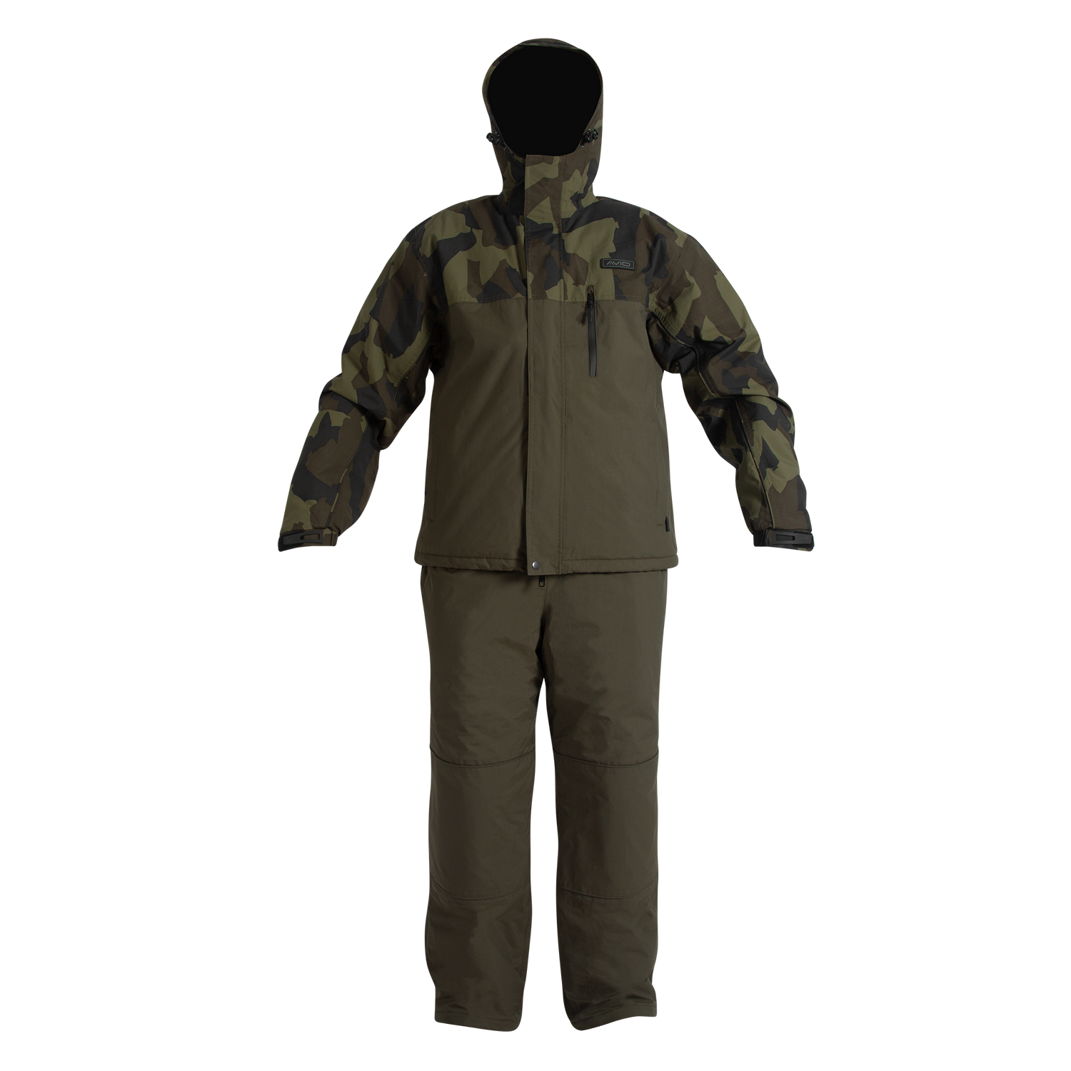 Wodoodporny kombinezon termiczny marki Avid Carp model Arctic-Series 2-częściowy z konstrukcją w Kolor wojskowa zieleńidealna na sesje wędkarskie.