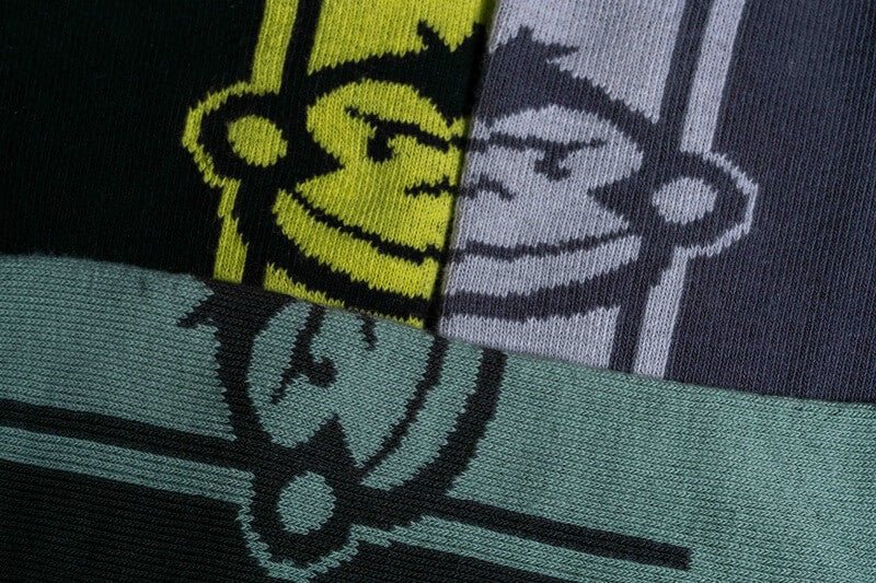 Zestaw trzech skarpet tej marki Ridge Monkey model Apearel Crew w rozmiarze 43-46 w kolorze zielonym, żółtym i szarym, szczególnie do łowienia karpi.