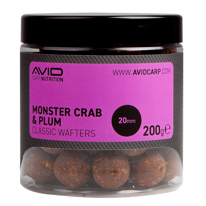 Wafters marki Avid Carp, zakres Classic, smak Monster Crab & Śliwka, szczególnie do łowienia karpi.