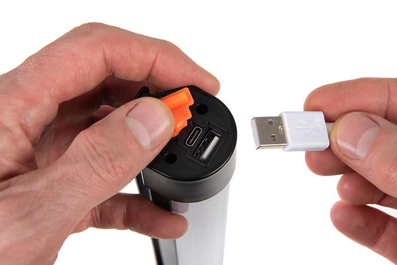 - Port ładowania USB-C i port wyjściowy USB do użytku jako zewnętrzny akumulator awaryjny
