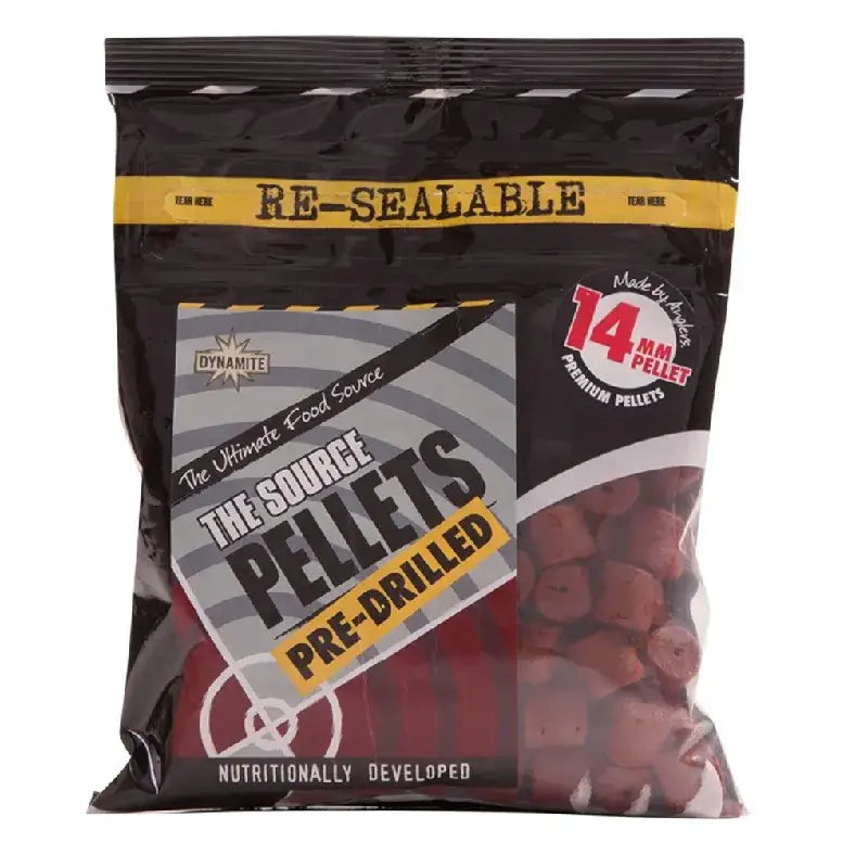 Pellets wywiercone otwory do oznaczania pozycji Dynamite Baits od 14 milimetrów aromatyzowany Source w kolorze brązowyspecjalne do łowienia karpi.