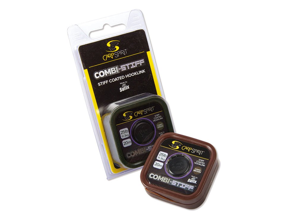 Zwój 20 metrów od przędzy plecionej marki Carp Spirit model Combi Stiff z wytrzymałością 15 funtów (6,8 kg) przy Kolor zielony kamuflaż, szczególnie do łowienia karpi.