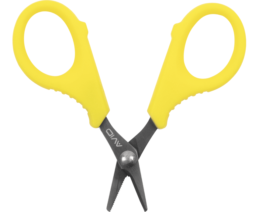 Nożyczki marki Avid Carp od Kolor żółty, kompaktowy rozmiar do plecionek, szczególnie do łowienia karpi.