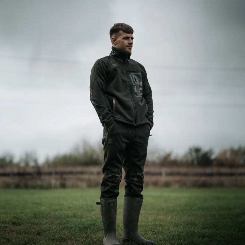 - Wiatroszczelna konstrukcja chroniąca przed zimnem, z wodoodpornymi łatami na kolanach i siedzeniu, które chronią przed wnikaniem wody podczas klęczenia lub siedzenia podczas trzymania ryb