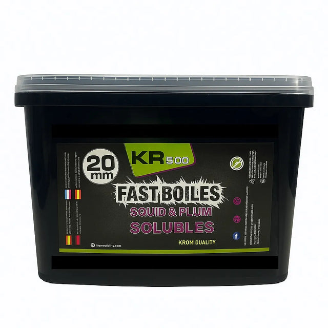 torba boilies marka rozpuszczalna Krom Quality zasięg KR500, smak Squid & Plum, od 20 milimetrów, zwłaszcza do połowu karpi.