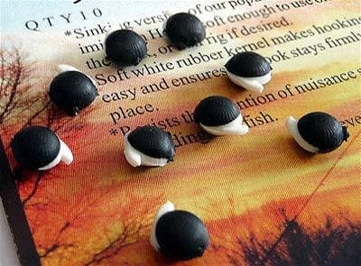 Wskazówka Użyj pojedynczego koralika na małym haczyku, np. w rozmiarze 18, lub kilka koralików można nawlec na włos, przepuszczając igłę z przynętą przez miękki koralik. Wyporność koralików częściowo zrównoważy ciężar haczyka. Orientacyjnie 10 ziaren zrównoważy haczyk typu próbka w rozmiarze 10.