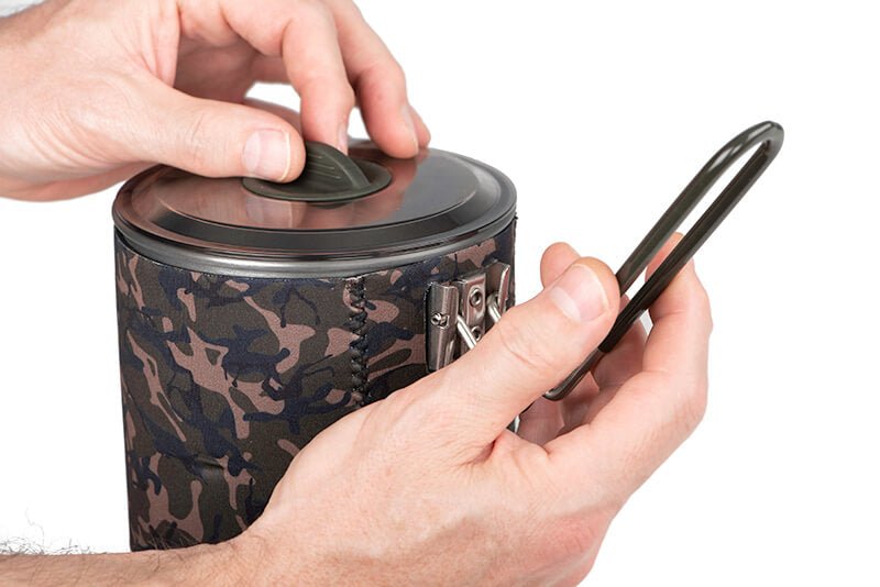 - Zawiera neoprenowy rękaw w kolorze camo, który może pozostać na patelni