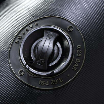 Kompaktowa łódź marki Raptor model 180 Belly Wide z powietrzną podłogą przy czarny, specjalne do łowienia karpi.