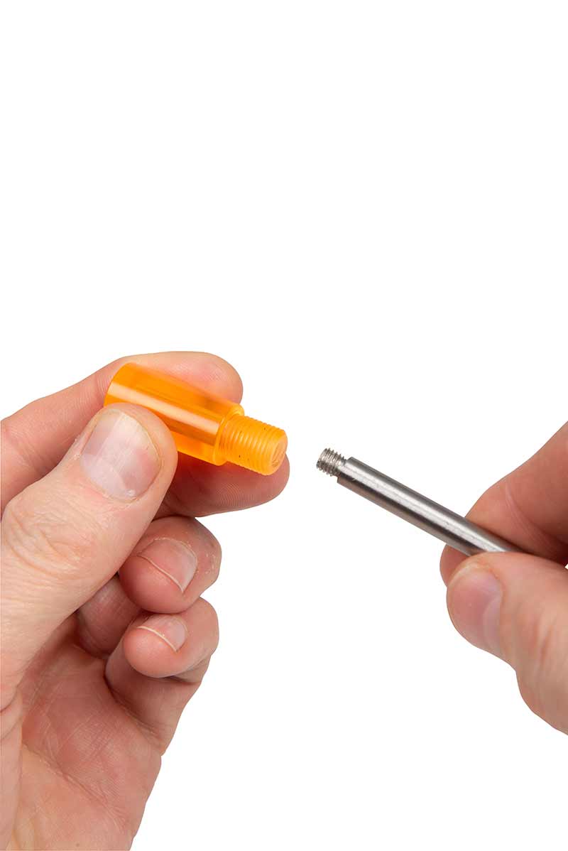 - Fluorescencyjna pomarańczowa nasadka z kieszenią izotopową 25 mm widoczna nawet w nocy i zabezpieczona gumową zatyczką
