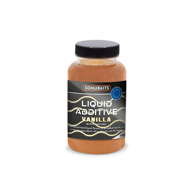 Płynny dodatek marki Sonubaits, smak Wanilia, specjalna do stosowania z przynętami karpiowymi.