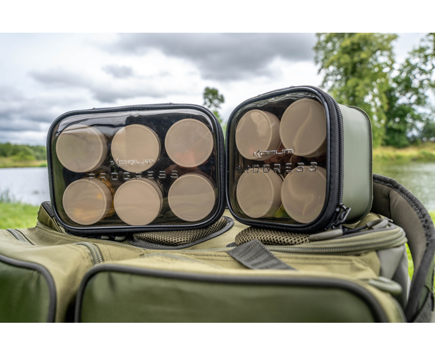 Torby dla doniczek na przynęty marki Korum, model Progress Eva, na Kolor zielony, przeznaczony do przechowywania przynęt, dipów i płynów.