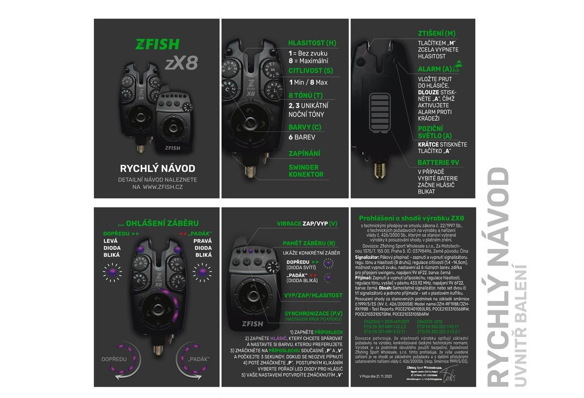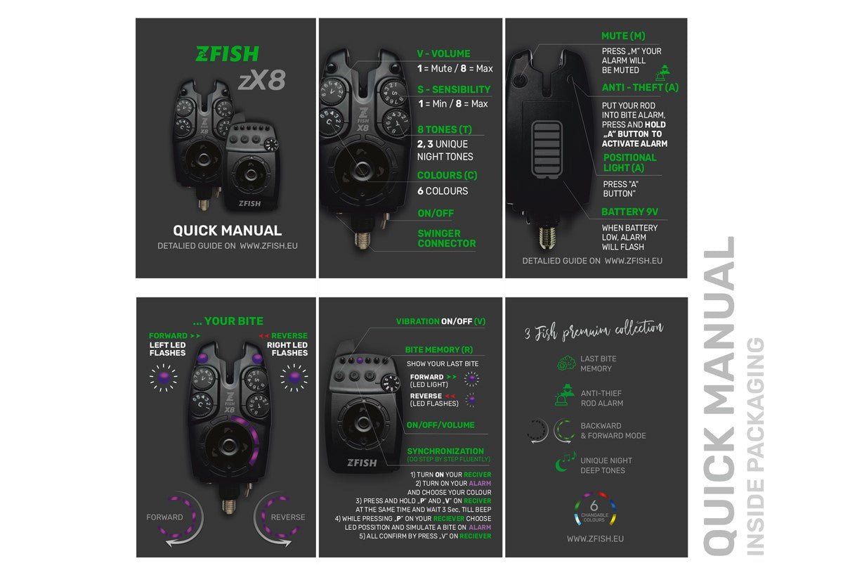 Zestaw 3 alarmów + markowy odbiornik Zfish, Model ZX8 Pro, specjalny do połowu karpi.