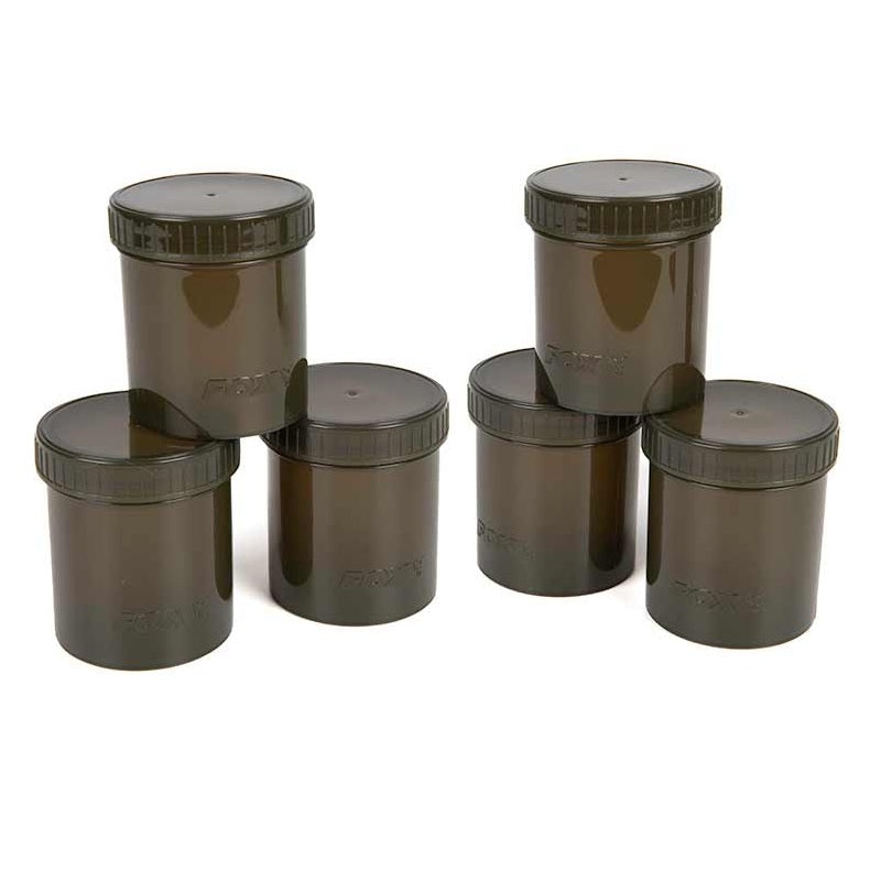 Opakowanie 6 słoików do przynęt marki Fox ,model Krawędzie, zaprojektowany do bezpiecznego przechowywania wszystkich przynęt haczykowych, szczególnie do łowienia karpi.